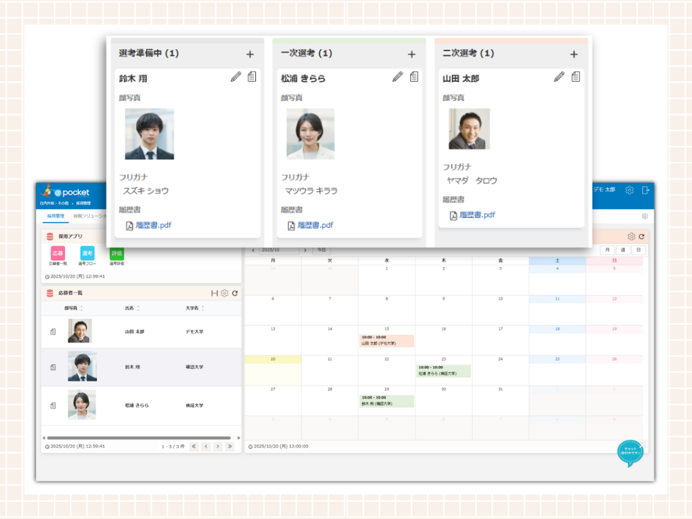 応募者の選考プロセスを自動化し、煩雑な手作業を減らしましょう。お礼メールの自動化が特に便利です。